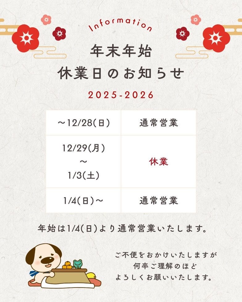 【休業期間:2025年12月29日(月)~2026年1月3日(土)】