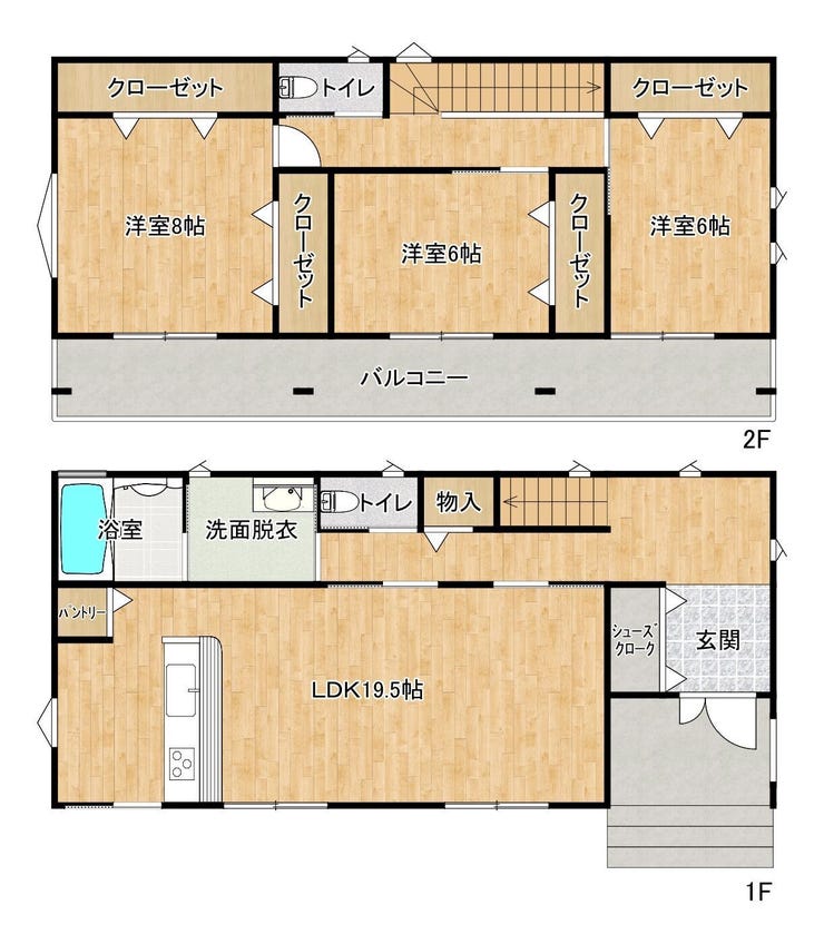 3LDK!リビング19.5帖!各居室に収納あり☆